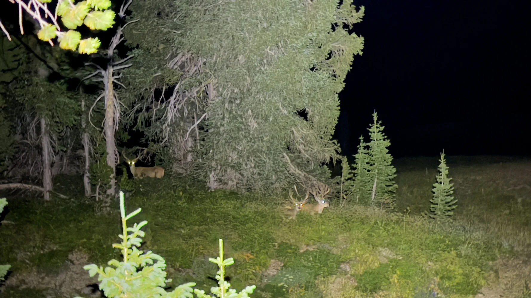 Thankfully, Travis, being more cool-headed in that moment (and with bear spray in hand), said he was going to the other side of the bluff to check it out. Moments later, he called “oh my god…….(pause that lasts forever)….it’s deer!” I rounded the bend to combine my light source with his, revealing three absolutely beautiful, multi-pointed bucks bedding down 50 feet from our camp.